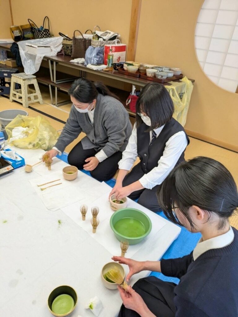 令和8年1月12日に支部初点茶会が富士市文化会館ロゼシアター4Fにて行われ、生徒36名と顧問教諭9名が参加しました。