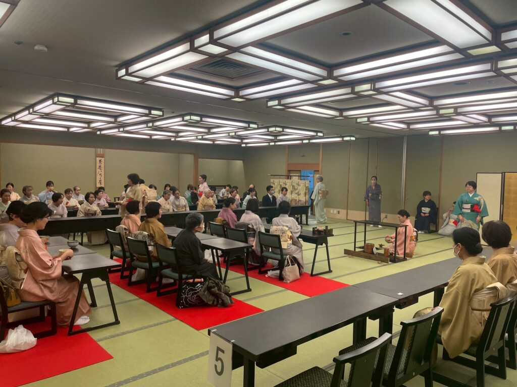 「ふれあい席」は学茶の先生方の温かいご指導とサポートのもと、高校生、大学生の方と青年部のみんなで力を合わせて、和やかな雰囲気の中、笑顔でお客様のご案内やお呈茶をすることができました。