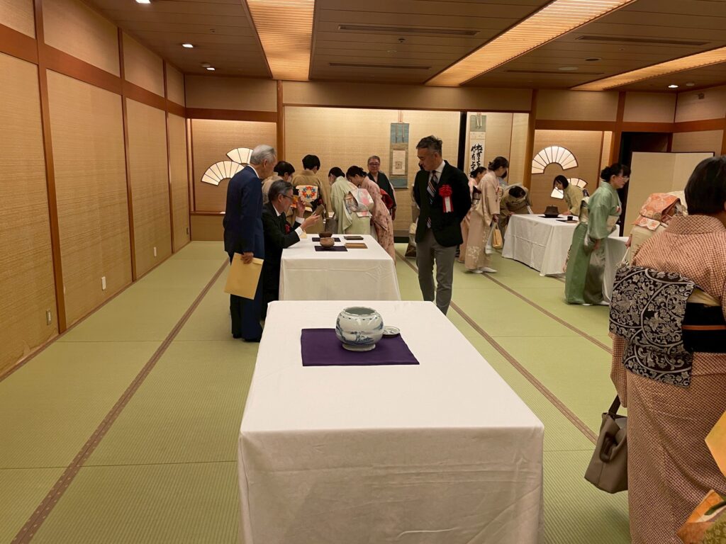 展観席では、鵬雲斎宗匠の御筆で、大松支部長の御母堂様のお名前にちなんだ軸がかけられており、午年にちなんだ道具組も拝見することができました。