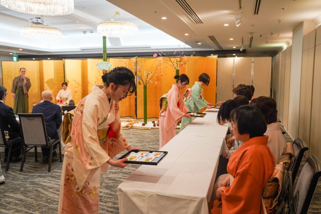 昨年から青年部ジュニア会員(学生会員)14名もお運びを体験していただきました。