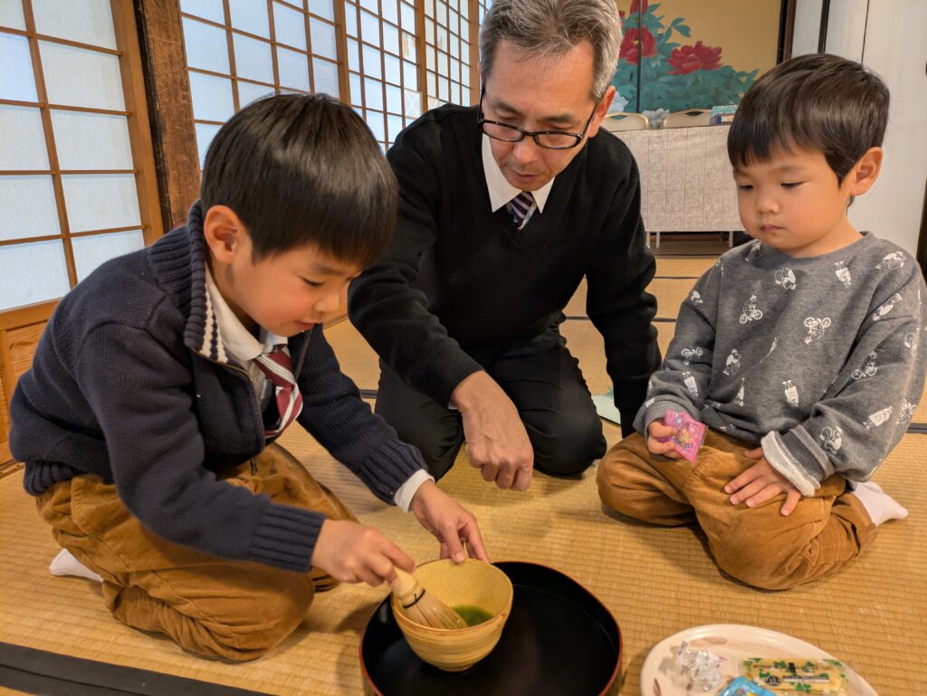 退席後に参加の子どもさんがお茶を点てる体験を行いました。実際にお茶を点てる体験が子どもさんにとっては一番楽しく感じられたようでした。
