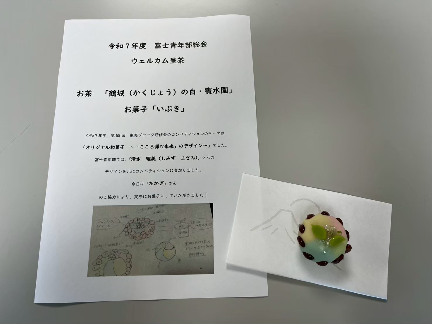 お菓子は「いぶき(ブロックのコンペティション出品作品を具現化したもの)」を用いました。